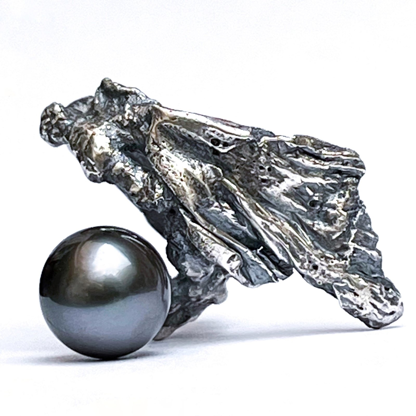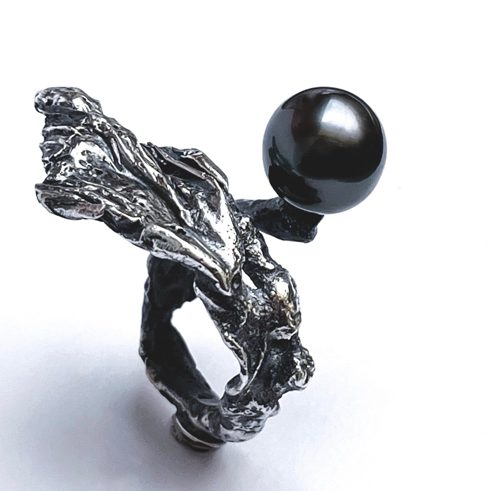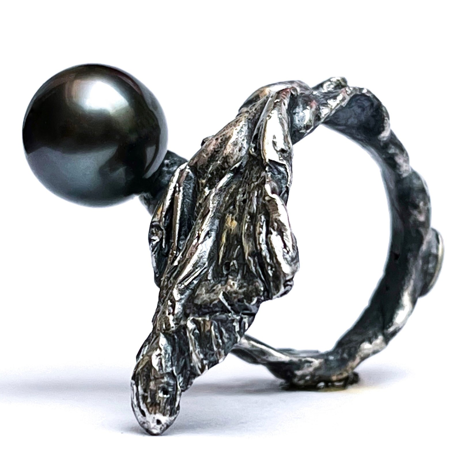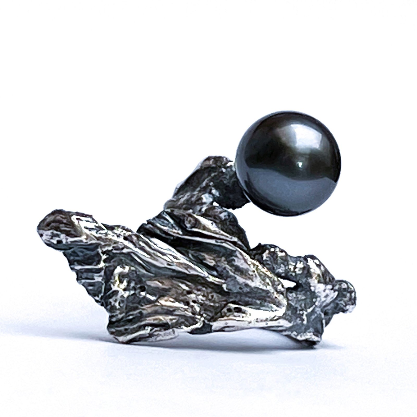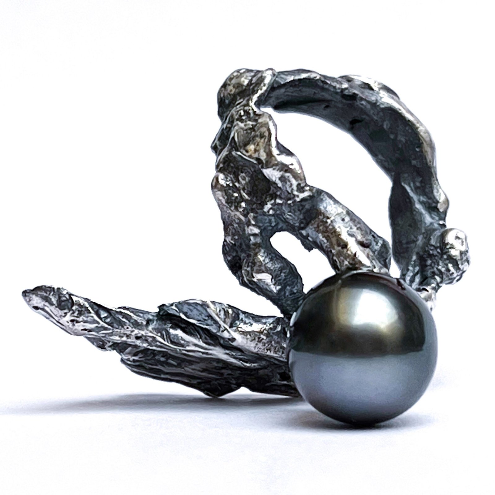 «Donde la luz no llega, nace la verdadera fuerza. El anillo Abismo de Tahití es una pieza de carácter escultural que rinde homenaje a la profundidad del océano. Forjado en plata con una pátina negra que emula las rocas volcánicas submarinas, sostiene una imponente Perla de Tahití natural de 12 mm. perfectamente redonda y con un lustre espectacular. Esta perla, con sus matices oscuros y brillo metálico, representa el centro de nuestra propia marea: ese lugar de calma y poder que todos llevamos dentro. Una pieza única para quienes no temen sumergirse en lo profundo.»