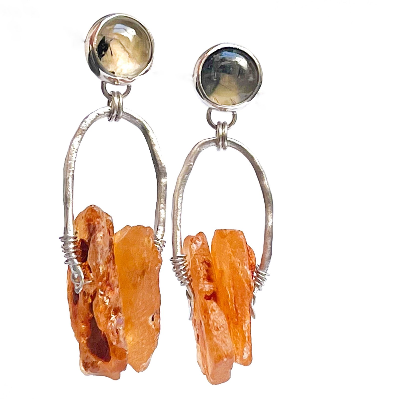 «Siente la conexión con la naturaleza a través de estos exclusivos aros de autor. Cada pieza es un diálogo entre la luz de la Prehnita (piedra de sanación y calma) y la energía milenaria del Ámbar en su estado más puro y orgánico.
