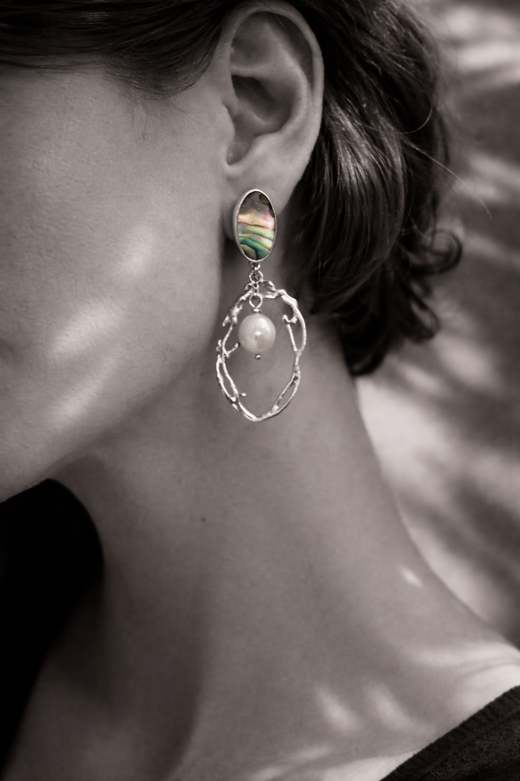 «Más que una joya, una captura de luz marina. Los Aros ‘Aurora’ son un diálogo entre la fuerza texturizada de la plata 950 y la delicadeza orgánica del océano. Su diseño, de líneas limpias y formas abstractas, rinde homenaje a la marea sin ser literal, llevando la mística del abalón y la elegancia eterna de una perla barroca natural a un plano sofisticado y contemporáneo.
