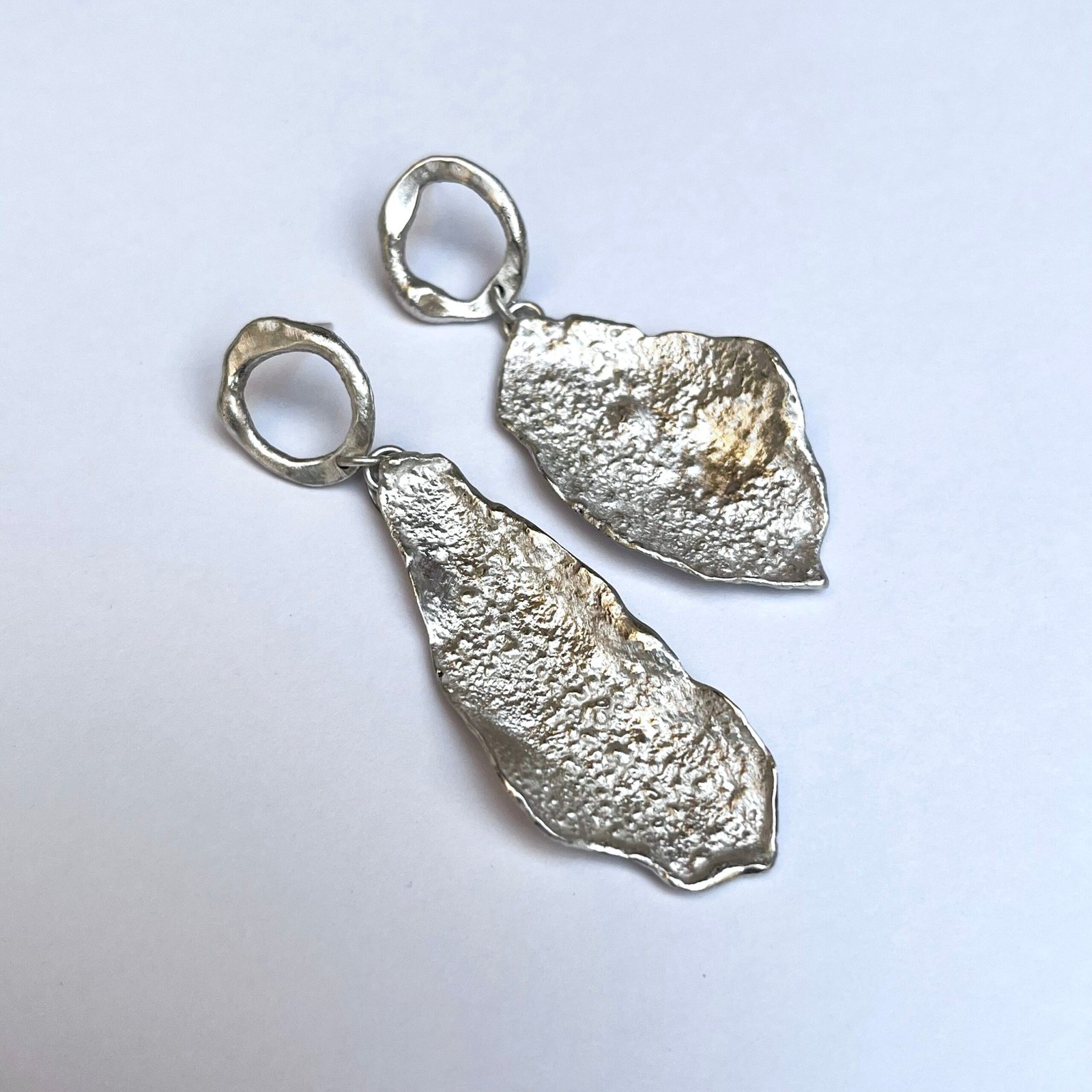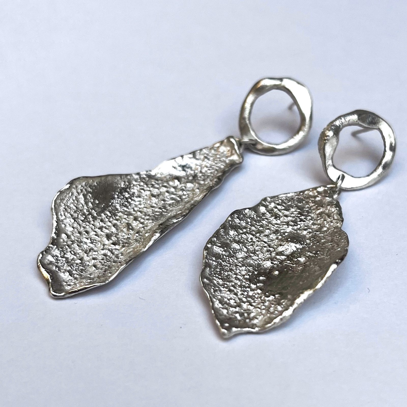 Su diseño orgánico y su acabado en plata brillante los convierten en el complemento perfecto para quienes buscan una elegancia natural, cruda y contemporánea.»