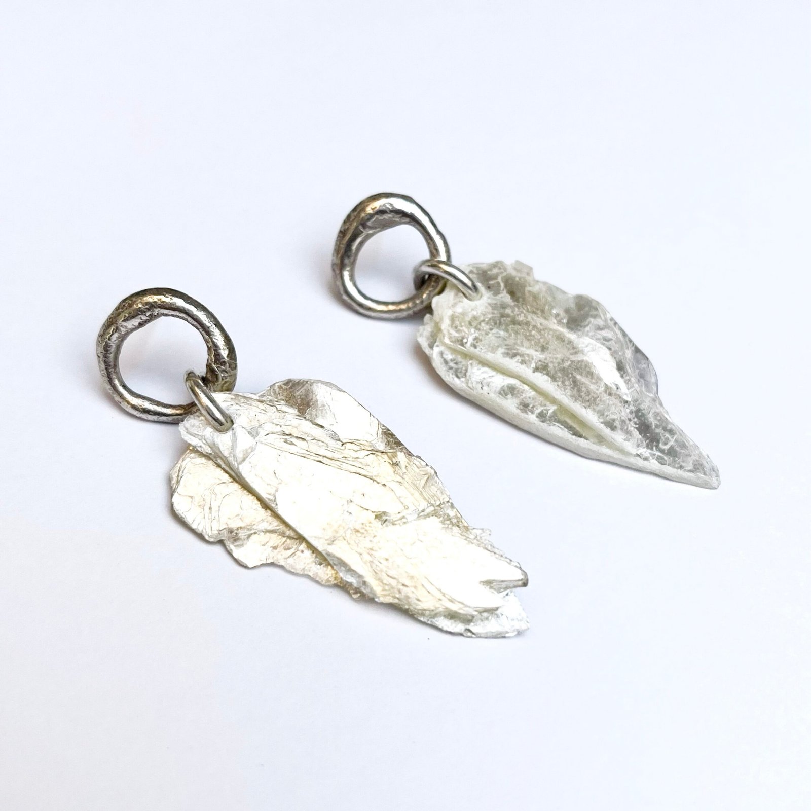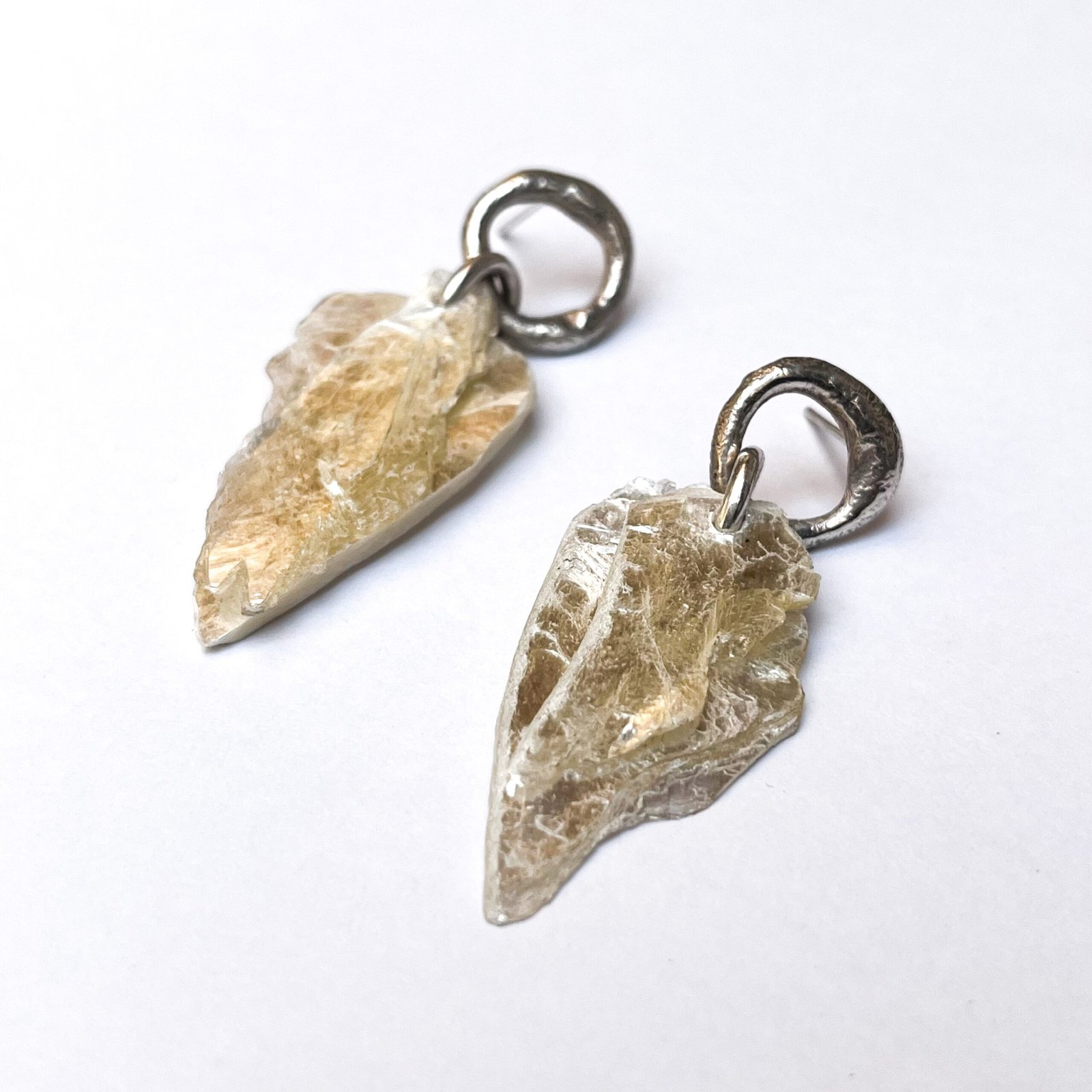 «Nacidos de la tierra y forjados a fuego. Estos aros capturan la esencia vibrante de la Fucsita, un mineral natural conocido por sus destellos de mica verde. Cada mineral con su forma única y bruta resalta por su belleza orgánica junto a la plata.
