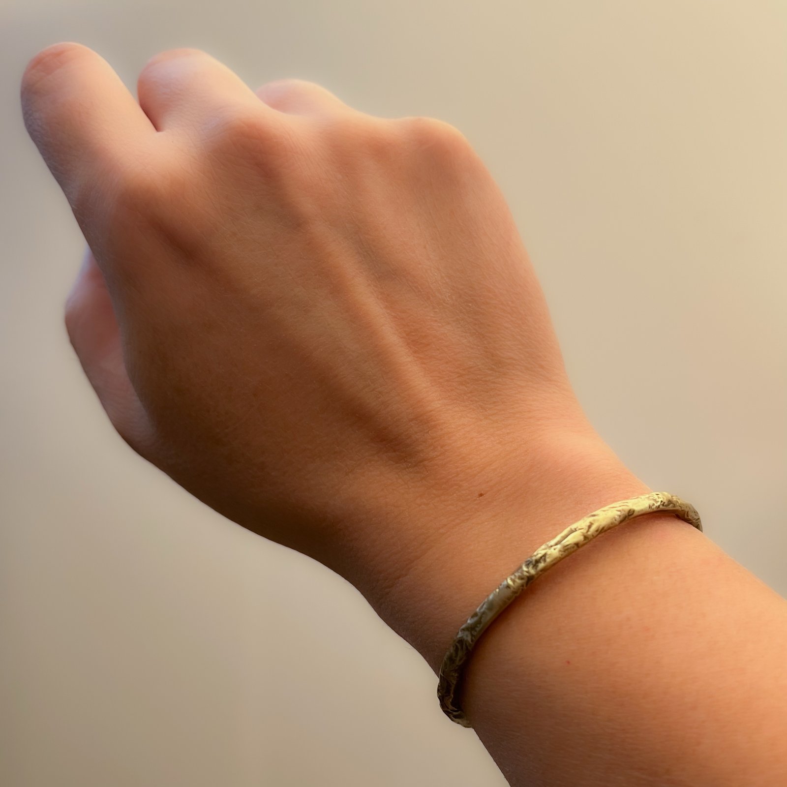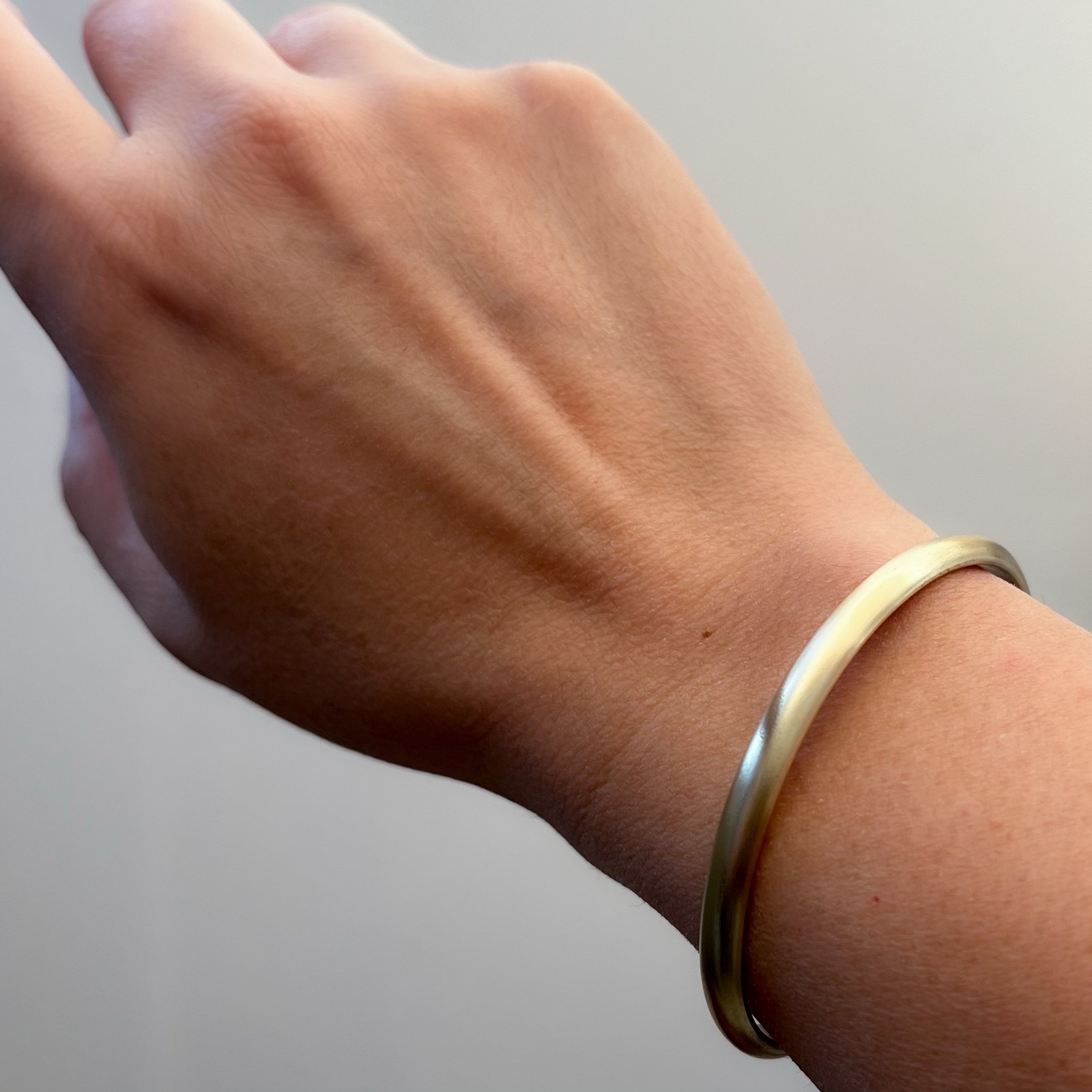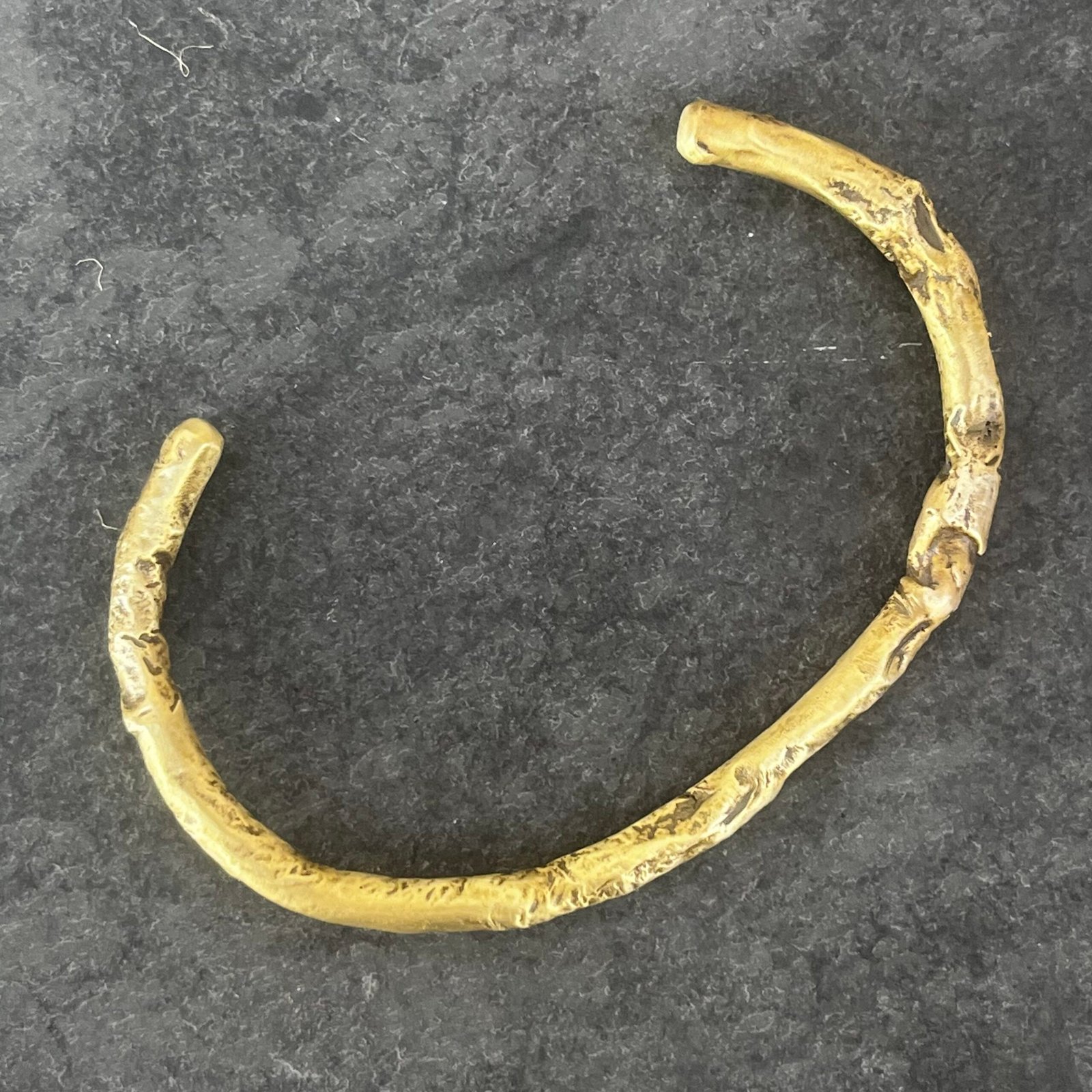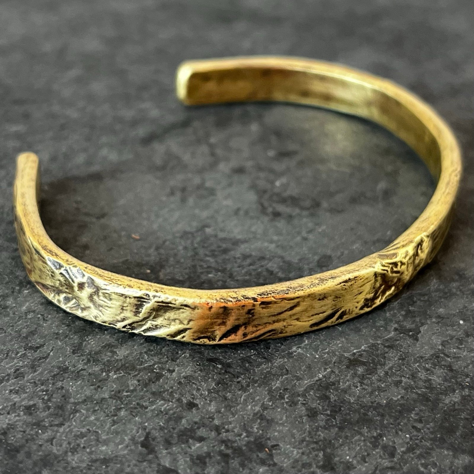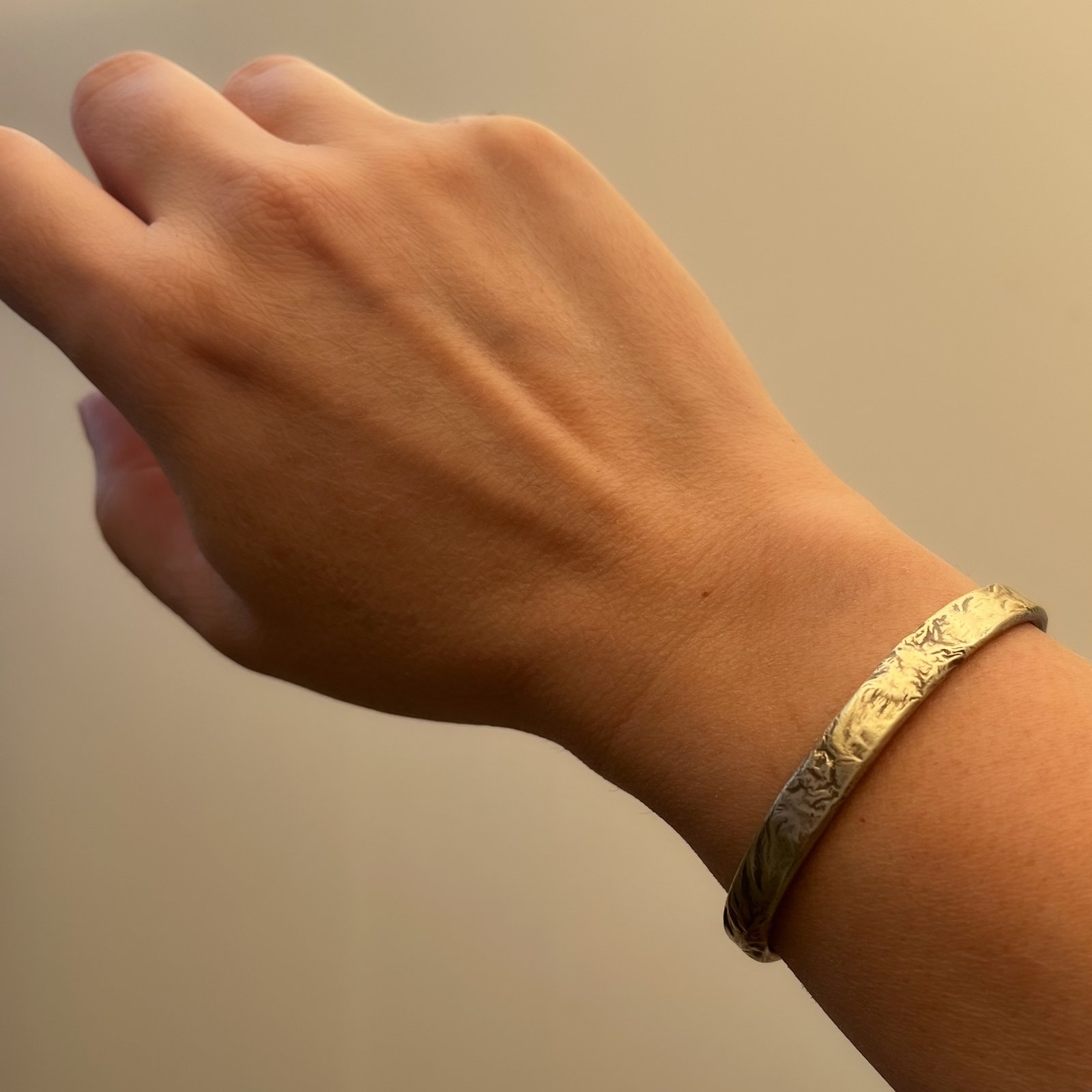 «Nacidos del calor extremo y la fuerza del metal, los Brazaletes Elementales celebran la belleza de lo imperfecto. Cada pieza es forjada artesanalmente en bronce, un metal que evoluciona con el tiempo, adquiriendo una pátina única según quien lo viste.