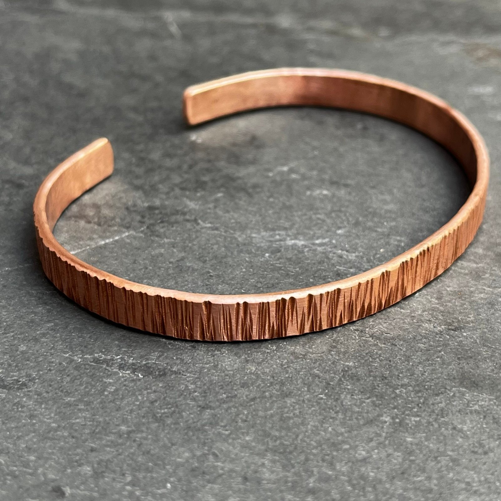 Al ser cobre sólido, estas pulseras no solo son un accesorio estético, sino que conectan con las propiedades tradicionales de este metal, evolucionando con una pátina única con el paso del tiempo.»